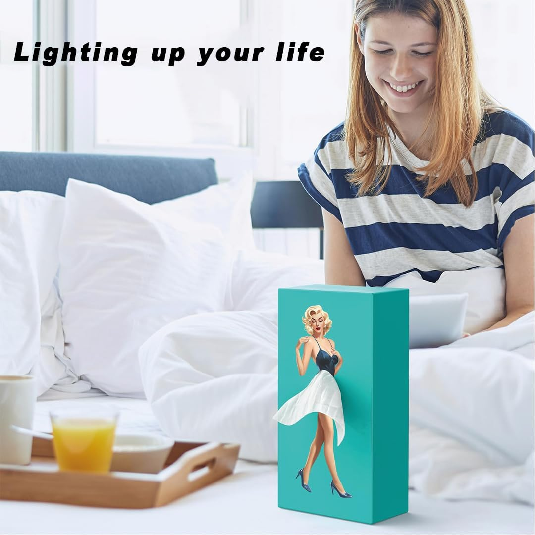 - Μια δημιουργικά σχεδιασμένη θήκη χαρτομάντιλων με μια γοητευτική και παιχνιδιάρικη εικονογράφηση της Marilyn Monroe.